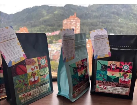 El café, presentado en bolsas de 250 gramos, proviene de Argelia, en el convulso departamento del Cauca (suroeste), una de las regiones históricamente más golpeadas por el conflicto armado y el narcotráfico.